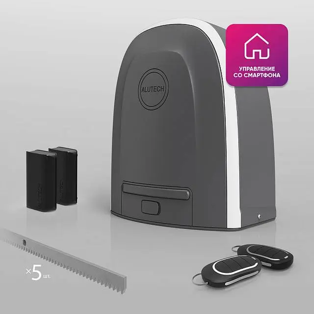 Умный привод для откатных ворот ALUTECH Roteo RTO-500MKIT-Sm + проводные фотоэлементы LM-L + рейка ROA8 (5 шт.) + Wi-fi модуль WM-Sm