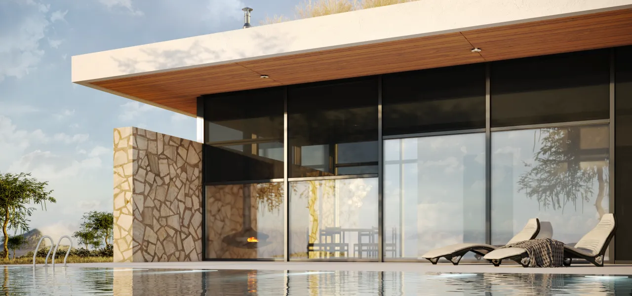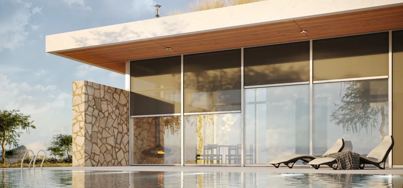 Главная функция — защита от солнца и перегрева. Также солнцезащитные системы позволяют регулировать доступ дневного света в дом. А еще они защищают от бликов на зеркальных поверхностях и обеспечивают приватность жильцов.