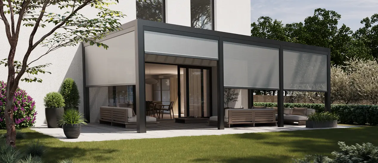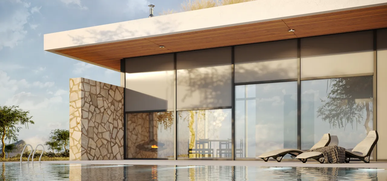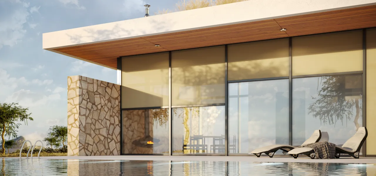 - Простота использования. Солнцезащитные системы легко поднимаются и опускаются, а также могут быть интегрированы в умный дом.