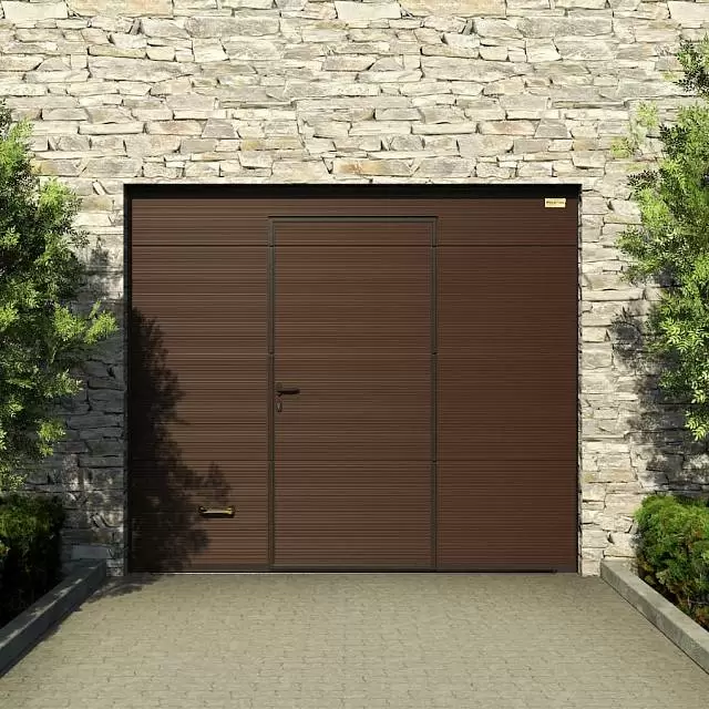 для отдельного входа-выхода. Дверь гармонично сочетается с гаражными воротами, придавая фасаду дома завершенный вид