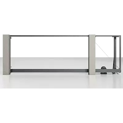 Совмещение направляющей шины с рамой в единый элемент увеличивает жёсткость конструкции и препятствует образованию перекосов. В направляющей шине предусмотрен «козырек» для фиксации зубчатой рейки и установки автоматики.