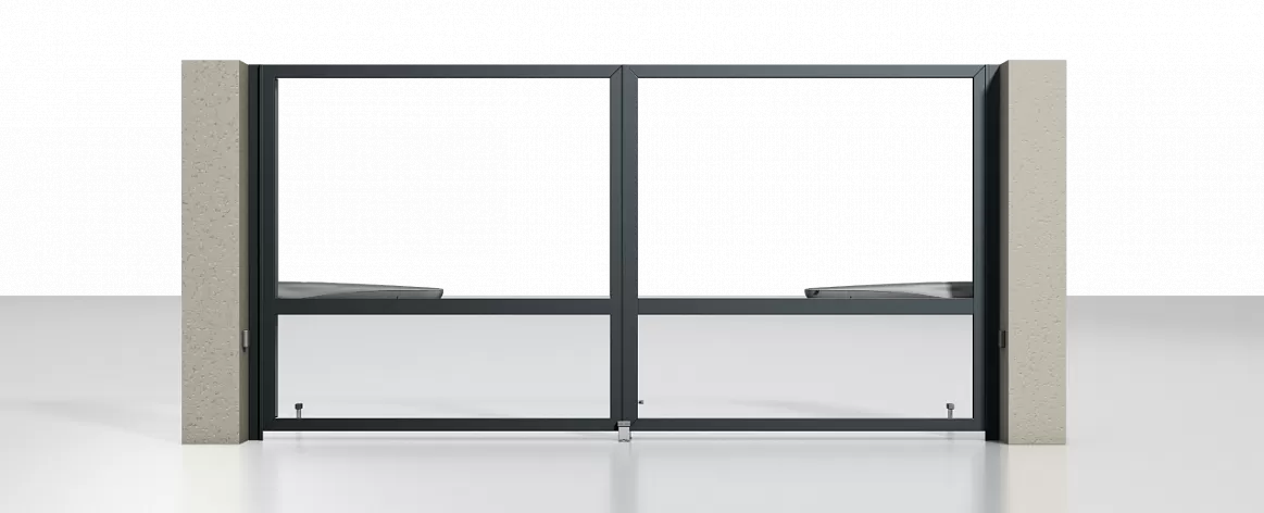 Распашные ворота и калитки серии Prestige могут открываться в двух направлениях: внутрь (встроенный и накладной монтаж) и наружу (встроенный монтаж).